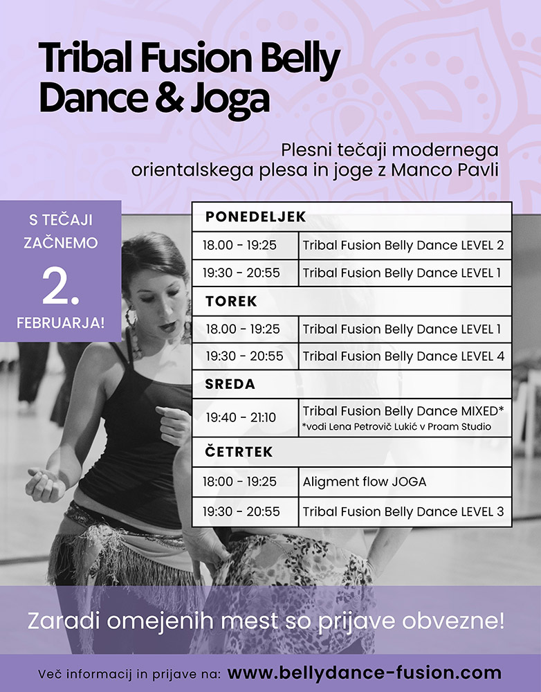 *sezono zaključimo s predstavo Tribalicious, 6. 6. 2026, na kateri nastopajo tečajnice društva KUD TARAB s koreografijo, ki se jo naučijo v tem času (nastop ni obvezen).